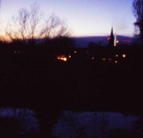 Ausschnitt aus einer 10-stündigen Aufnahme auf Farbnegativfilm, Kleinbildlochkamera. Ca. 30x30cm.